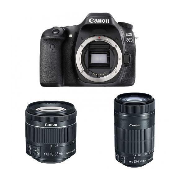 Le meilleur prix pour Canon EOS 80D + 18-55/3.5-5.6 IS STM + 55-250/4.0-5.6 IS STM est actuellement de 553,00 €. leDénicheur compare les promos et les offres de 2 marchands en ligne.