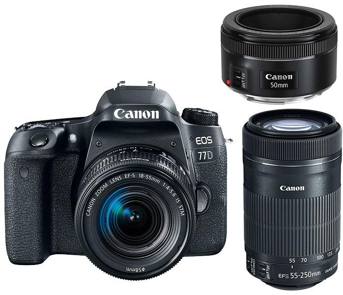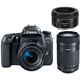 Le meilleur prix pour Canon EOS 77D + 18-55/3.5-5.6 IS STM + 55-250/4.0-5.6 IS + 50/1.8 STM est actuellement de 964,00 €. leDénicheur compare les promos et les offres de marchands en ligne.