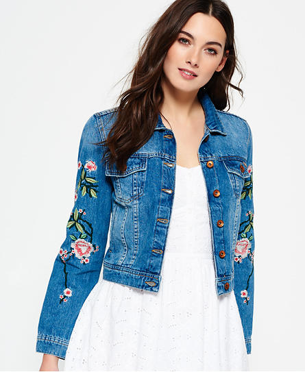 Superdry Embroidered Sleeve Denim Jacket (Femme)