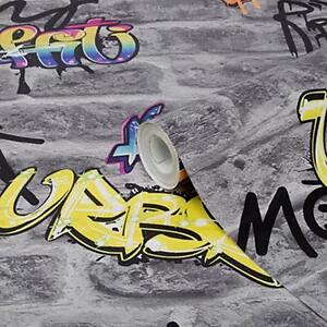 GoodHome Orobe Grey Graffiti Brick