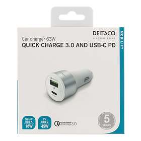 Deltaco Car Charger Quick Charge 3.0 USB-C PD