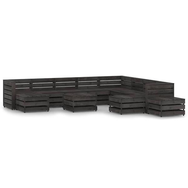 vidaXL 12 Piece Garden Lounge Set Grey Impregnated Pinewood