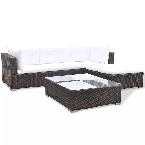 vidaXL 5 Piece Garden Lounge Set with Cushions Poly Rattan Brown