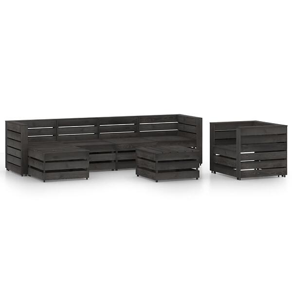 vidaXL 7 Piece Garden Lounge Set Grey Impregnated Pinewood