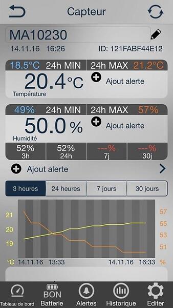 Données de mesure: Humidité (Hygromètre), Température intérieure
