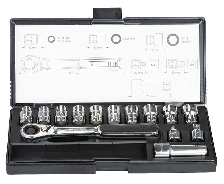 Makita B-65595 1/4"-3/8" Hylsnyckelsats 14-delar