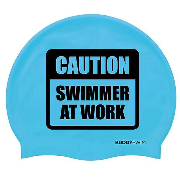 BuddySwim Caution Swimmer At Work Silicone Badmössa Blå