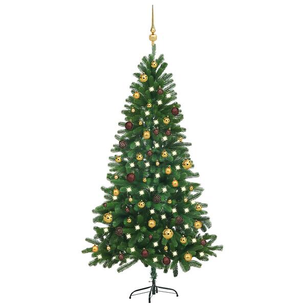 Hauteur: 180 cm, Fonctionnalités: Avec des illuminations, Avec des boules de Noël, Couleur: Vert