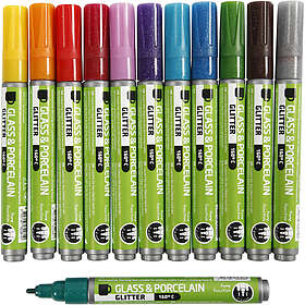 Glass & Porcelain Pens Glitter Colors 2-4mm 12-pcs