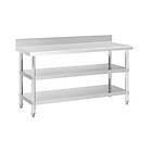 Royal Catering Inox arbetsbänk med skyddskant 150 x 60 16,5 cm 226kg 2 hyllor