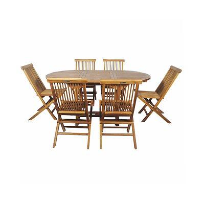 Cémonjardin Salon de jardin en teck grade C Lombok : table ronde 6 chaises Marron