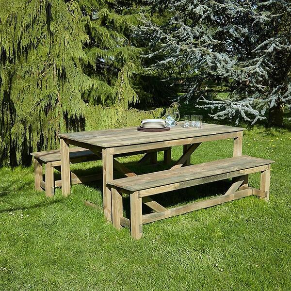 Cémonjardin Salon de jardin avec bancs en bois Normand 6 places Marron