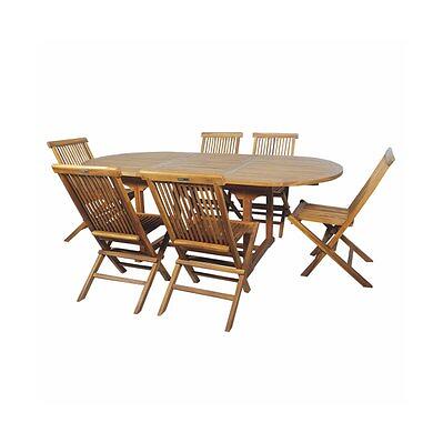 Cémonjardin Salon de jardin en teck grade C Lombok : table ovale 6 chaises Marron