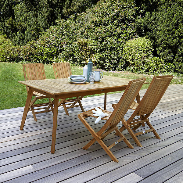 Cémonjardin Salon de jardin Bali en teck grade C : table rectangulaire 4 chaises Marron