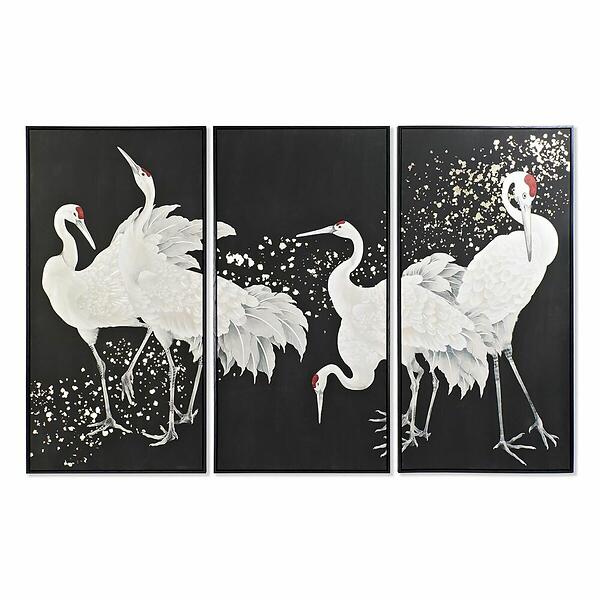 DKD Home Decor Sæt med 3 malerier Orientalsk Hejre (210 x 4 x 140 cm)
