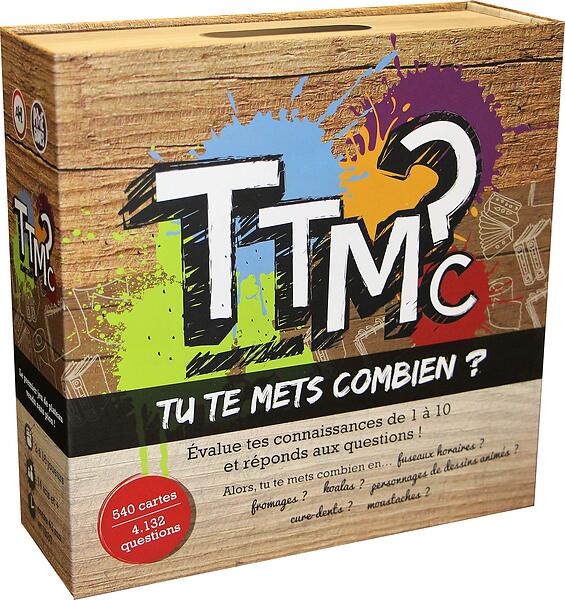TTMC: Tu te mets combien? est un jeu de société orienté party game, idéal pour les groupes d'amis cherchant une ambiance conviviale et dynamique, avec des règles en français. Rush Hour, en revanche, est un jeu de logique destiné principalement aux enfants et aux joueurs solo, proposant un défi différent basé sur la résolution de puzzles. Les deux jeux ne nécessitent pas d’extensions et ne sont pas conçus pour être compacts ou facilement transportables. Rush Hour offre ses règles en plusieurs langues, dont le français, tandis que TTMC est uniquement en français. Enfin, leurs dimensions diffèrent notablement, TTMC étant plus grand en hauteur, tandis que Rush Hour est plus profond, reflétant leurs concepts et formats très distincts.