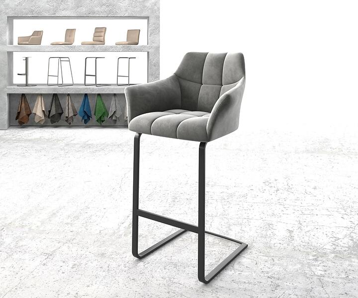 DELIFE Chaise-de-bar Yulo-Flex velours gris chaise cantilever métal plat