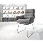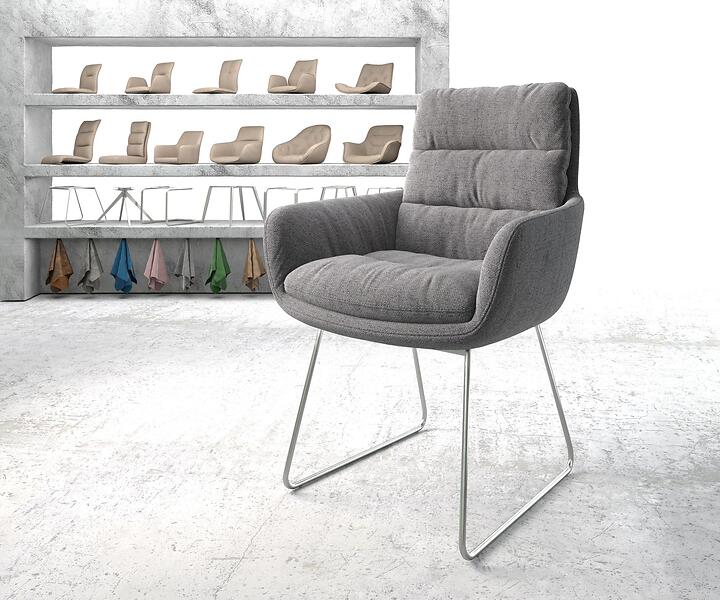 DELIFE Chaise-de-salle-à-manger Abelia-Flex avec accoudoir tissu texturé gris clair cadre croisé acier inoxydable