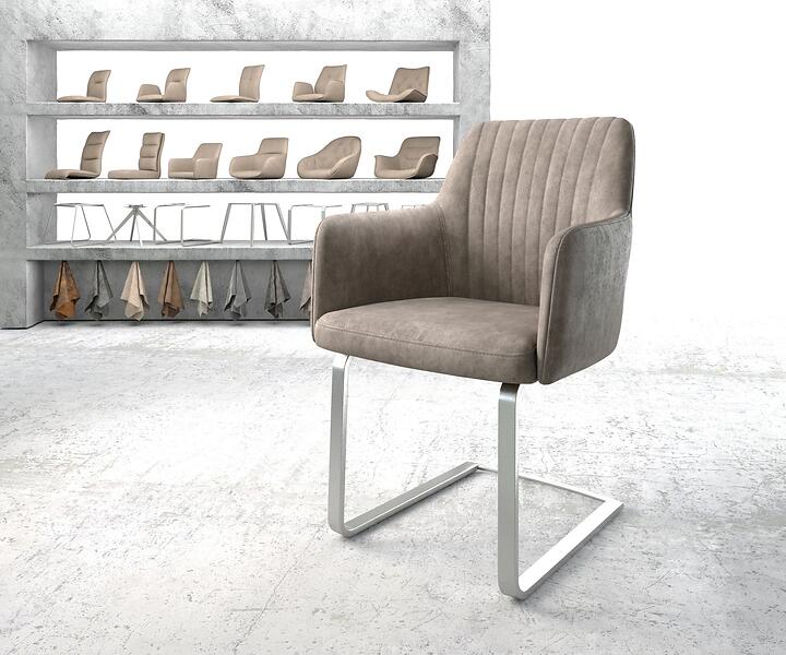 DELIFE Fauteuil Greg-Flex taupe vintage cantilever plat acier inoxydable