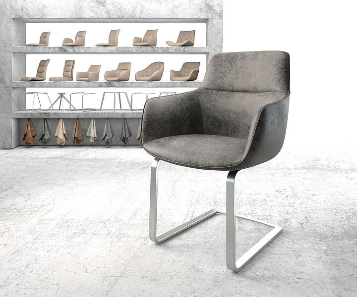 DELIFE Chaise de salle à manger Pejo-Flex gris vintage cantilever plat acier inoxydable