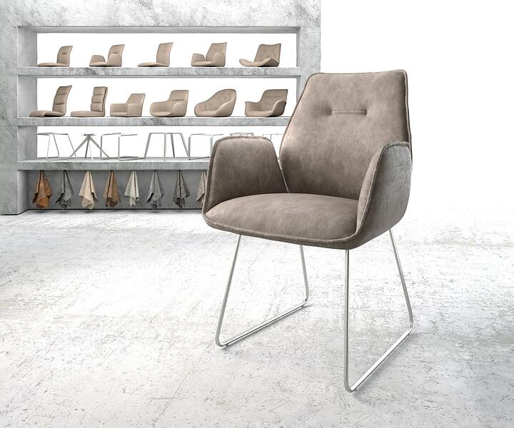 DELIFE Fauteuil Zoa-Flex taupe vintage cadre patin acier inoxydable