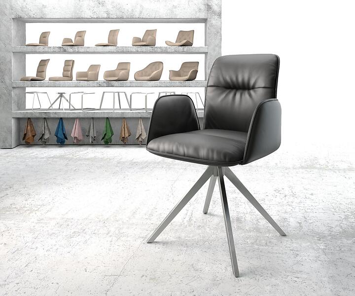 DELIFE Chaise-pivotante Vinja-Flex noir cuir véritable cadre croisé angulaire acier inoxydable