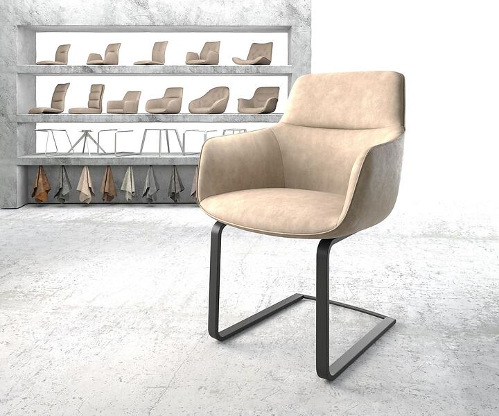DELIFE Chaise de salle à manger Pejo-Flex beige vintage cantilever plat noir