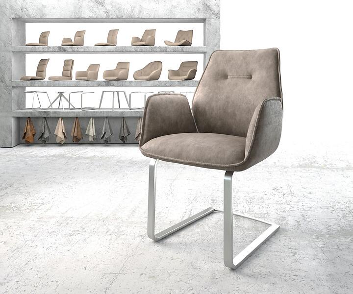 DELIFE Fauteuil Zoa-Flex taupe vintage cantilever plat acier inoxydable