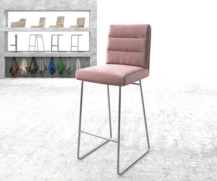 DELIFE Chaise-de-bar Pela-Flex velours rosé cadre de patins acier inoxydable
