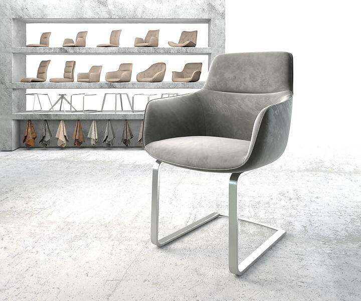 DELIFE Chaise de salle à manger Pejo-Flex gris velours cantilever plat acier inoxydable