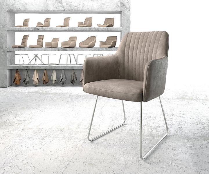 DELIFE Fauteuil Greg-Flex taupe vintage cadre patin acier inoxydable