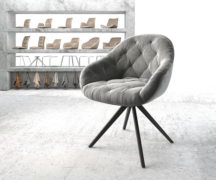 DELIFE Chaise-pivotante Gaio-Flex gris velours cadre croisé carré noir