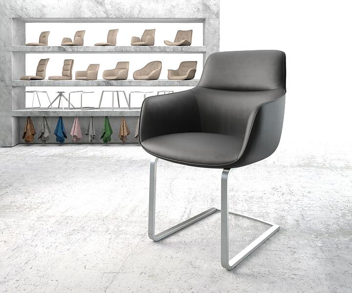 DELIFE Chaise-de-salle-à-manger Pejo-Flex noir cuir véritable cantilever plat acier inoxydable