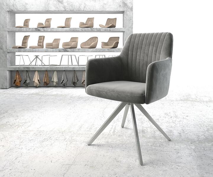 DELIFE Chaise-pivotante Greg-Flex gris velours cadre croisé carré acier inoxydable