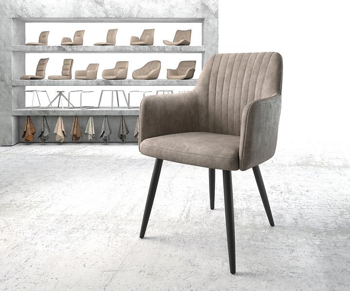 DELIFE Fauteuil Greg-Flex taupe vintage 4-pieds conique noir
