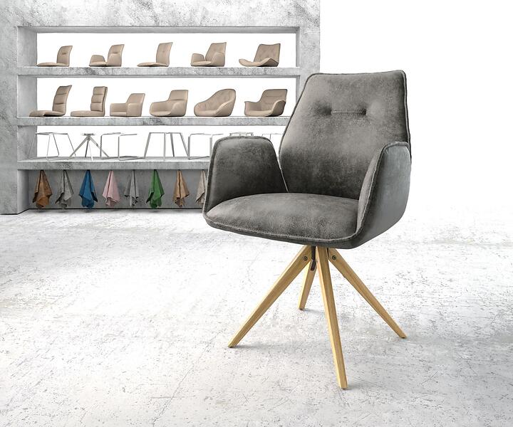 DELIFE Chaise-pivotante Zoa-Flex gris vintage microvelours cadre en bois angulaire