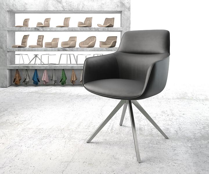DELIFE Chaise-pivotante Pejo-Flex noir cuir véritable cadre croisé angulaire acier inoxydable
