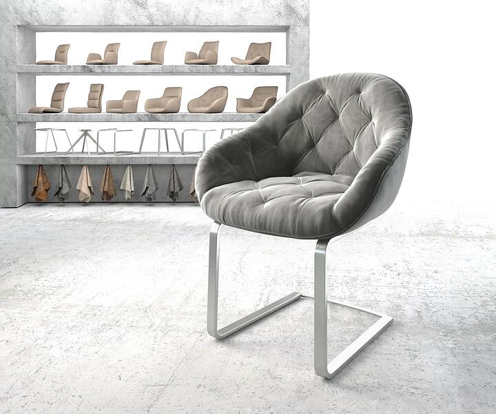 DELIFE Fauteuil Gaio-Flex gris velours cantilever plat acier inoxydable