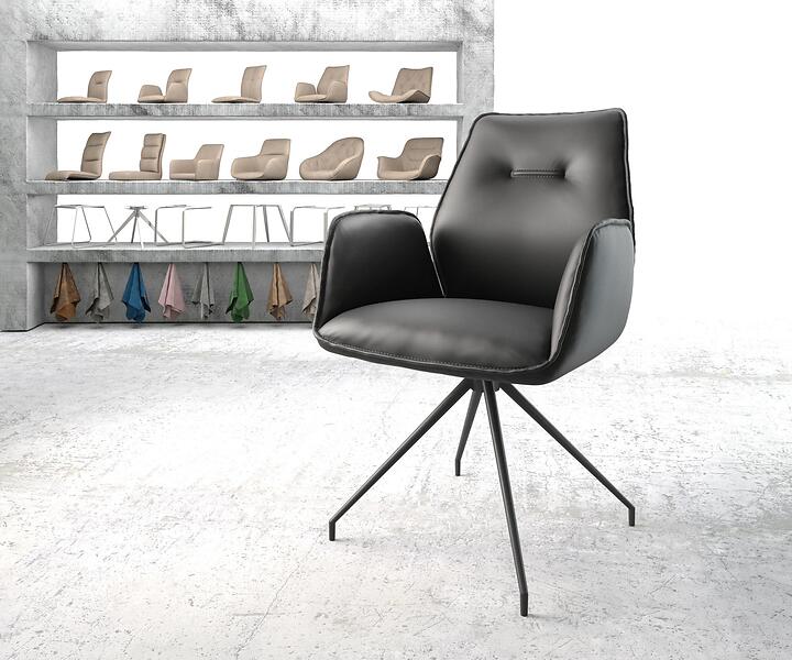 DELIFE Chaise-pivotante Zoa-Flex noir cuir véritable cadre croisé conique