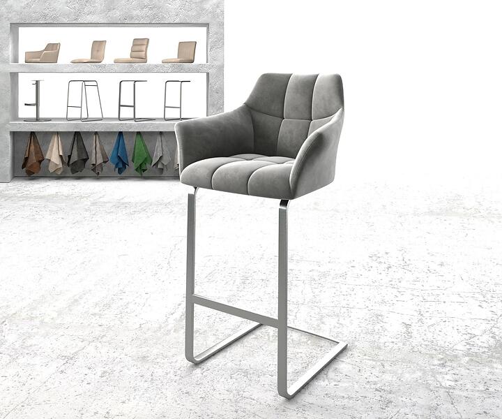 DELIFE Chaise-de-bar Yulo-Flex velours gris chaise cantilever acier plat inoxydable