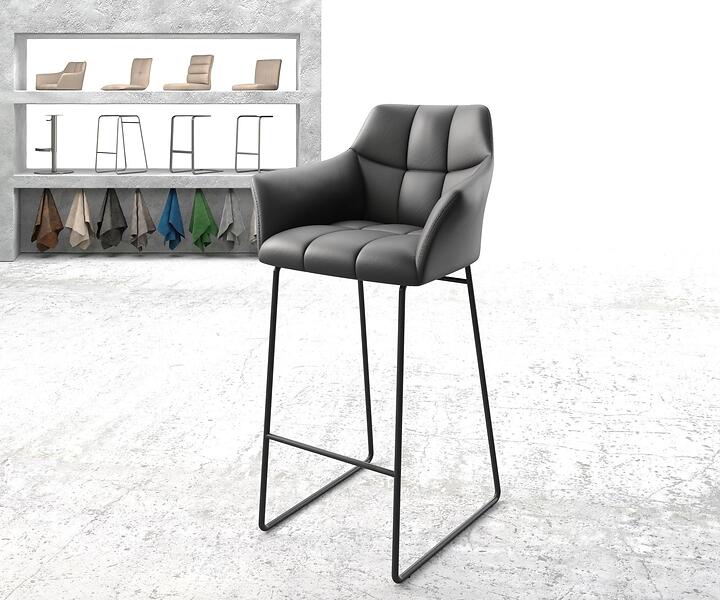 DELIFE Chaise-de-bar Yulo-Flex cuir véritable noir cadre de patins métal
