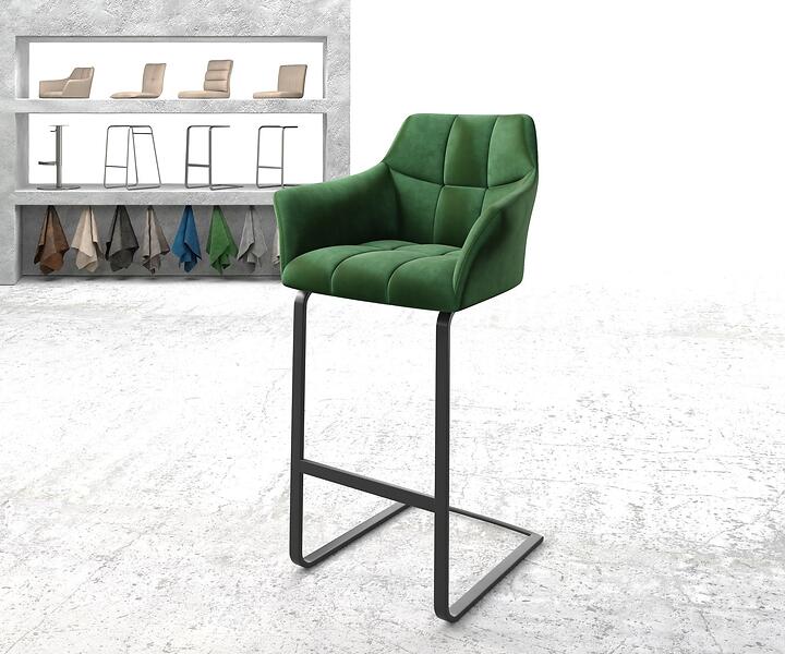 DELIFE Chaise-de-bar Yulo-Flex velours vert chaise cantilever métal plat