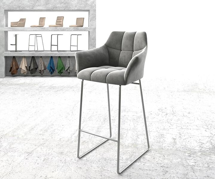 DELIFE Chaise-de-bar Yulo-Flex velours gris cadre de patins acier inoxydable