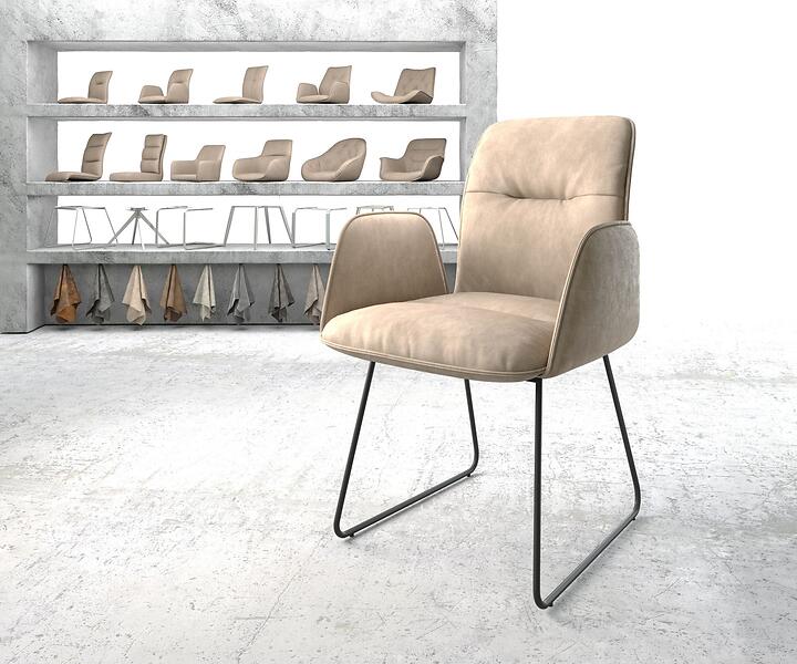 DELIFE Fauteuil Vinja-Flex beige vintage cadre patin noir
