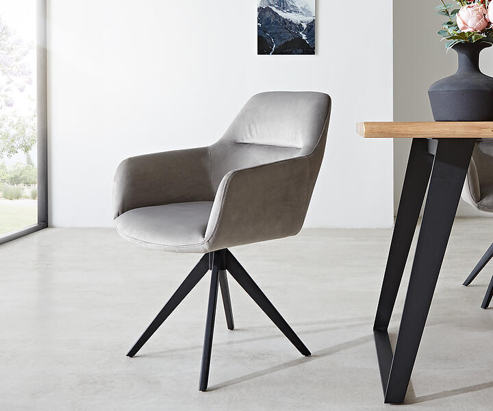 DELIFE Chaise-pivotante Pejo-Flex gris velours cadre croisé carré noir