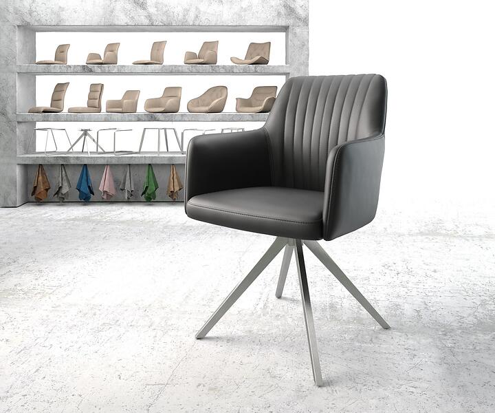 DELIFE Chaise-pivotante Greg-Flex noir cuir véritable cadre croisé angulaire acier inoxydable