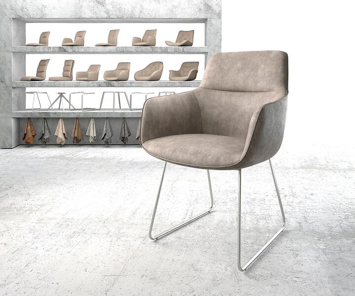 DELIFE Chaise de salle à manger Pejo-Flex taupe vintage cadre patin acier inoxydable