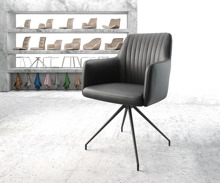 DELIFE Chaise-pivotante Greg-Flex noir cuir véritable cadre croisé conique