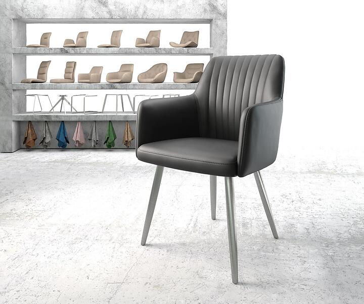 DELIFE Fauteuil Greg-Flex noir cuir véritable 4-pieds conique acier inoxydable
