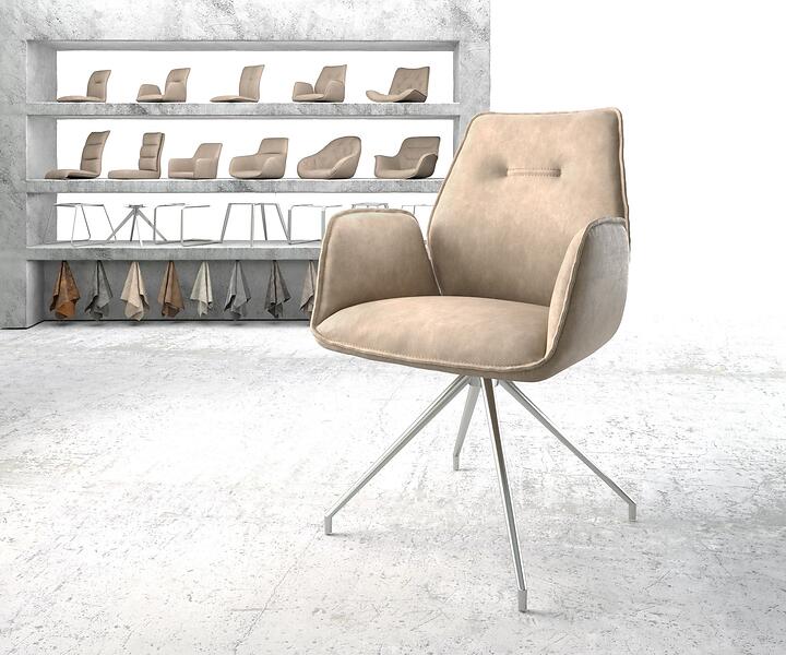 DELIFE Chaise-pivotante Zoa-Flex beige vintage cadre croisé conique acier inoxydable
